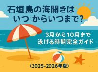 「石垣島って、いつから海に入れるの?」 「3月でも泳げるって本当?」 そんな疑問を持つ方へ、この記事では2025年〜2026年の石垣島・海開き情報を徹底解説します。 日本最南端に位置する石垣島では、毎年3月に「日本一早い海開き」が行われ、本州よりひと足早く夏の訪れを感じられます。 3月〜10月の長い期間にわたって海水浴やマリンアクティビティが楽しめるのも魅力です。 この記事では、 2025年の最新・海開きスケジュール一覧 2026年の開催予測と旅行計画の立て方 月別の泳ぎやすさ・水温・快適度 おすすめビー ...